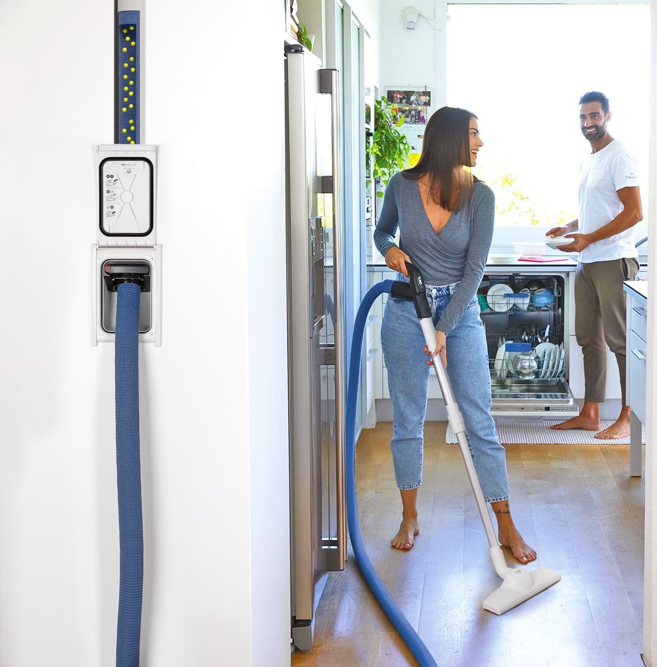 Smooth internal piping distributes suction points throughout the building while remaining hidden within walls and service spaces.